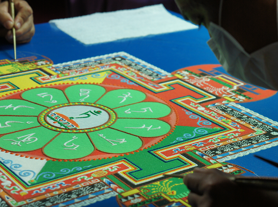 Compassion Tour 2014/15 - The Monks of Gaden Shartse Dokhang Khangston creating a sand mandala.
